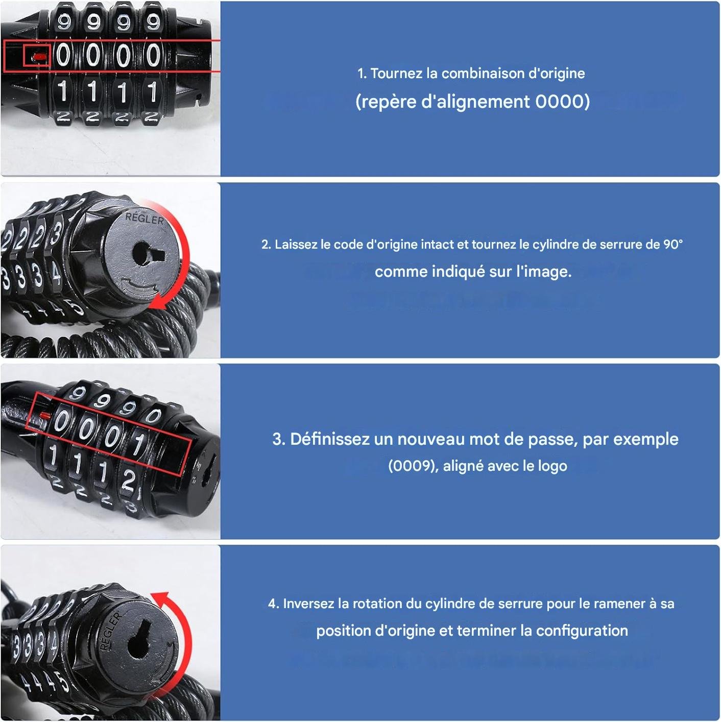 Oubliez les moments de panique à chercher vos clés au fond de vos poches. Le barillet à quatre chiffres offre dix mille combinaisons possibles pour garantir un accès exclusif à vos biens. Le cœur en alliage de zinc assure une barrière physique dissuasive et durable.